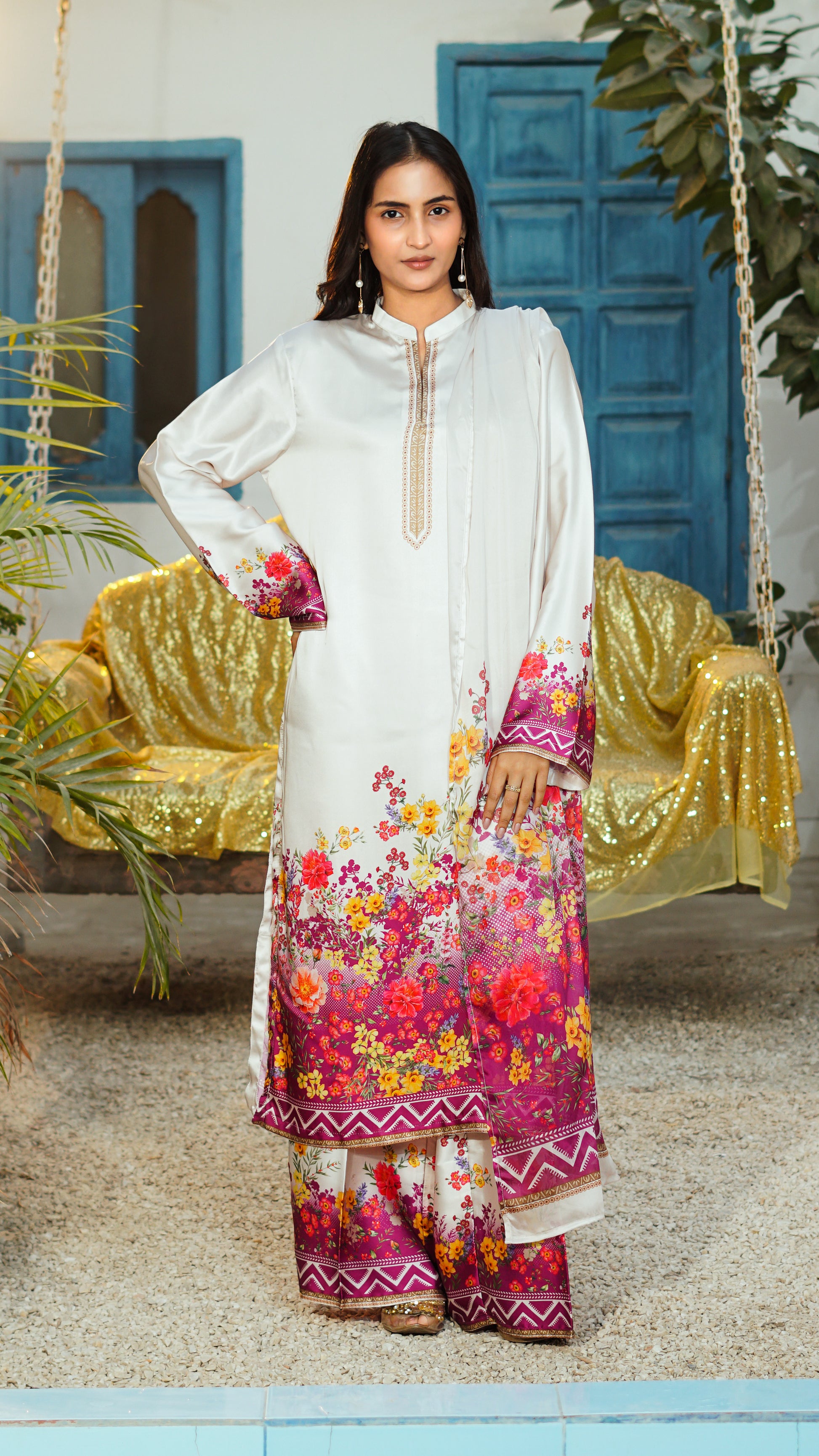 •  Fully stitched 3-piece set (Shirt, Trouser & Dupatta)