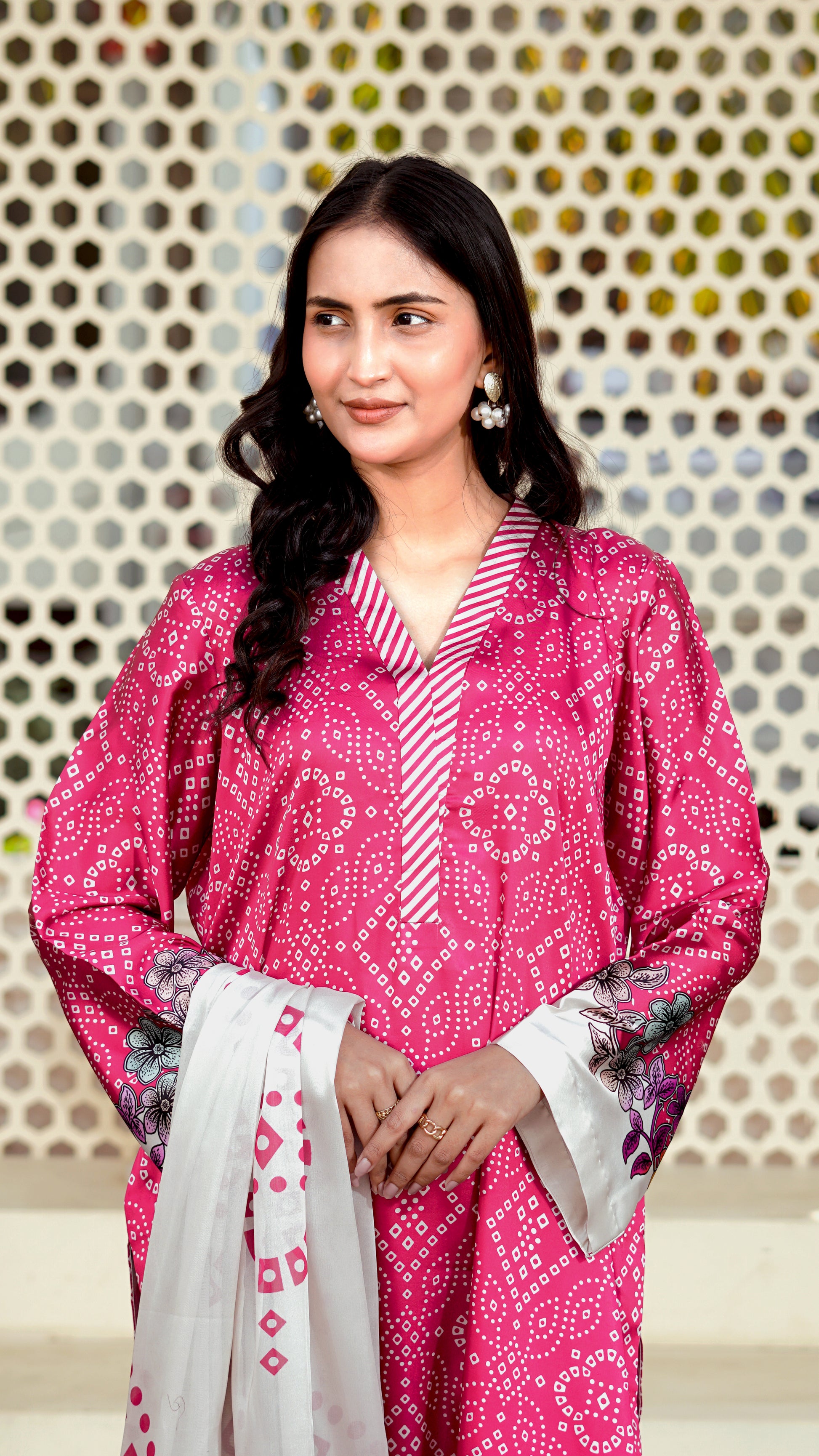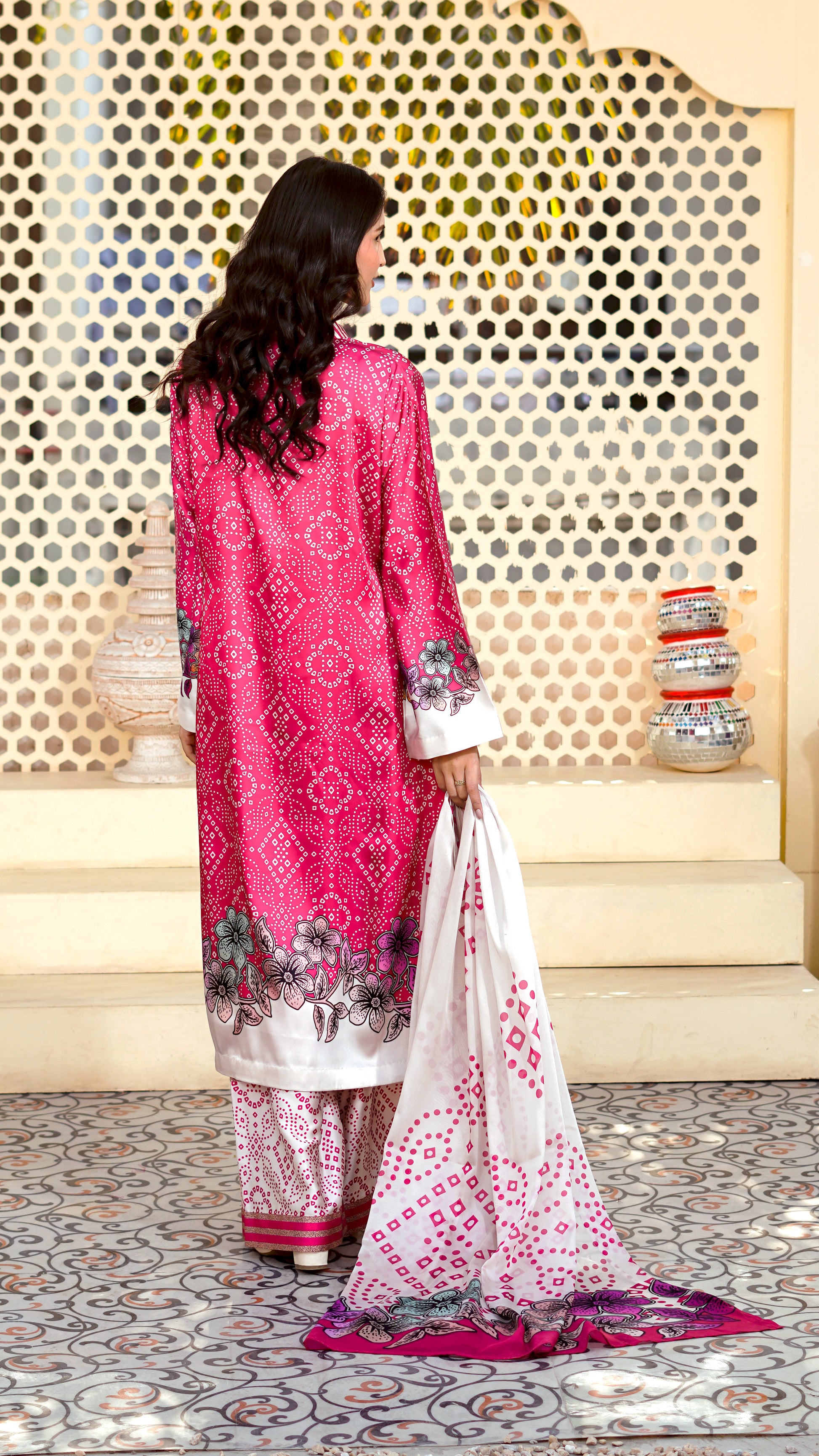 •  Color: Pink with Floral & Chunri Prints
