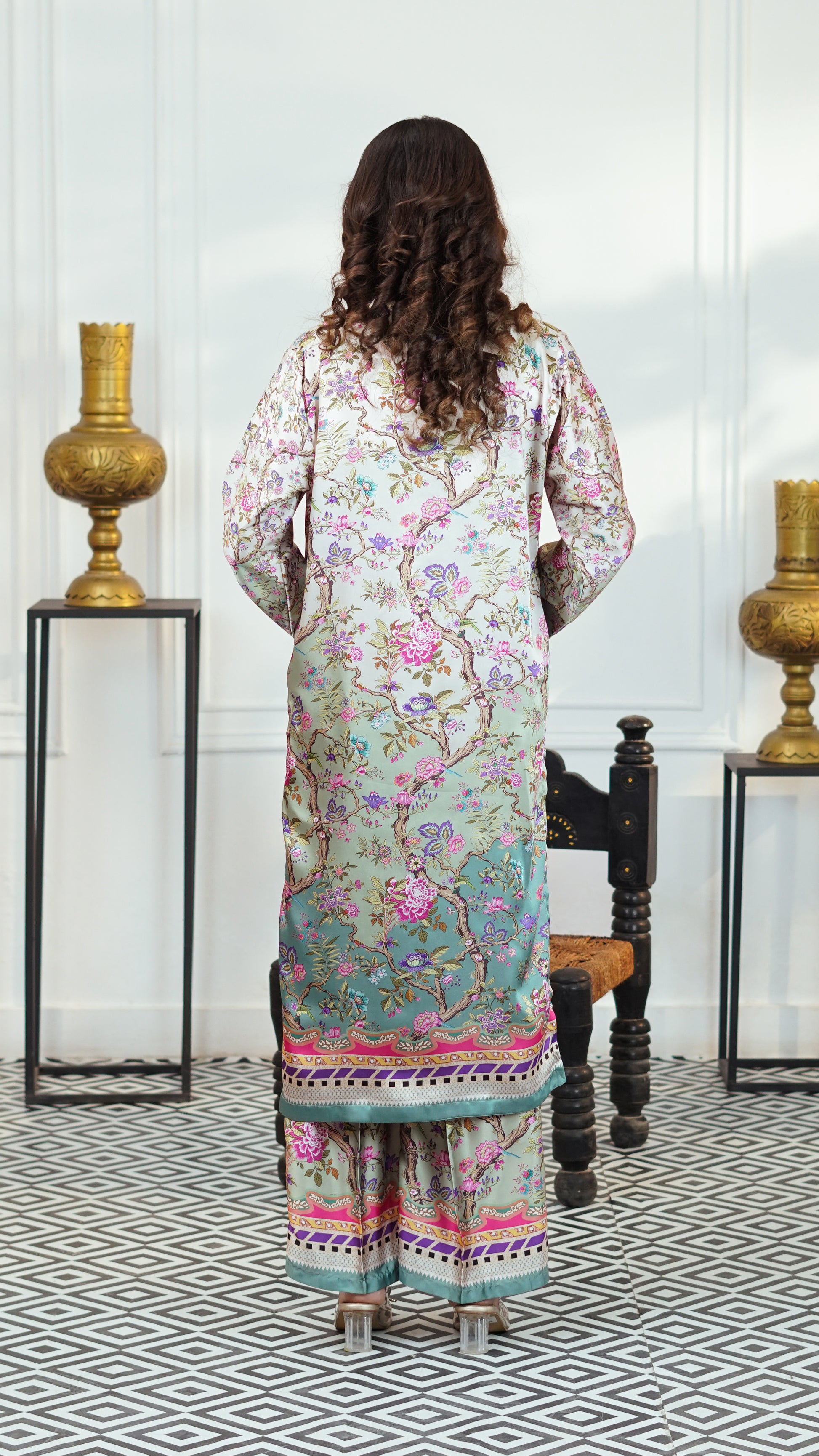 Mint Blossom is a beautifully stitched 2-piece women’s silk suit designed for effortless
